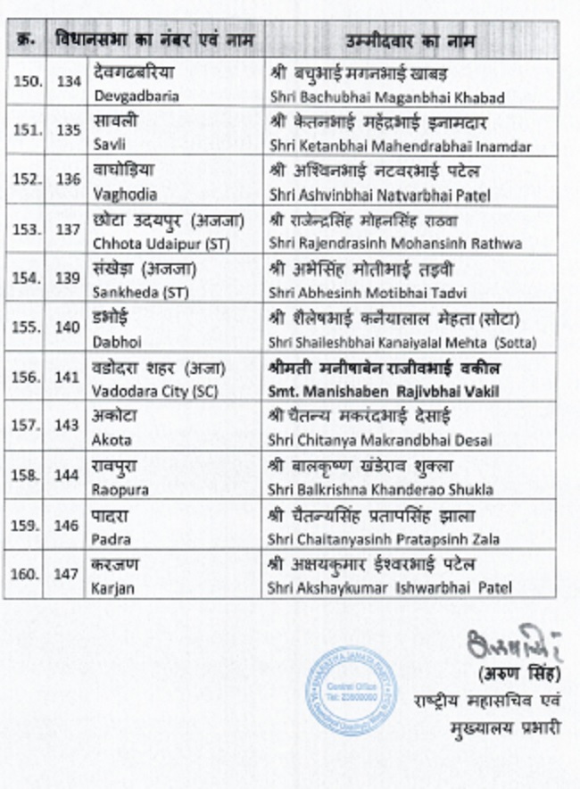 - भाजपा ने 182 में से 160 नामों का ऐलान कर दिया।