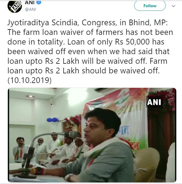 किसानों की कर्जमाफी को लेकर कांग्रेस में रार, अब ज्योतिरादित्य सिंधिया ने कमलनाथ सरकार पर लगाया ये आरोप