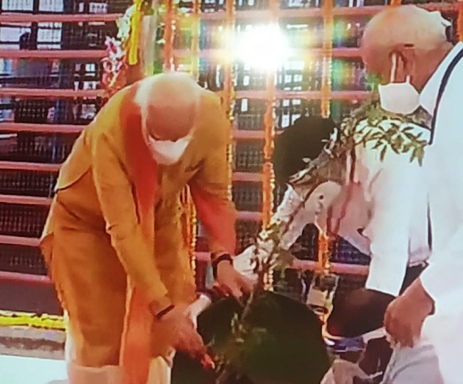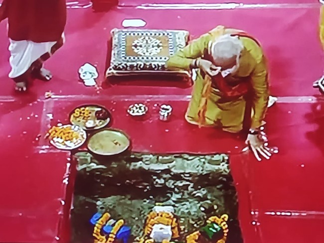 - करीब एक घंटे चले संबोधन के बाद प्रधानमंत्री नरेंद्र मोदी ने श्रीराम जन्मभूमि तीर्थ क्षेत्र ट्रस्ट के अध्यक्ष महंत नृत्य गोपाल दास का चरण छूकर आशीर्वाद लिया।