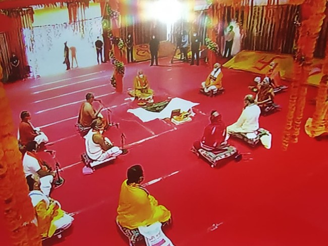 भूमि पूजन में पीएम मोदी के काशी विद्वत परिषद के तीन सदस्य : रामनगरी अयोध्या में आज होने वाले भूमि पूजन कार्यक्रम में देश भर के धर्माचार्यों के साथ कर्मकांड विद्वान बुलाए गए। यहां पर प्रधानमंत्री नरेंद्र मोदी के साथ काशी विद्वत परिषद के तीन सदस्य पूजा में बैठे। प्रो.रामचन्द्र पाण्डेय यहां पीएम मोदी के साथ बतौर साक्षी पूजा में बैठे। इस दौरान 12 बजकर 40 मिनट 08 सेकेंड पर मंदिर की आधारशिला रखी गई। पीएम मोदी के साथ पूजन के मंच पर अध्यक्ष राम जन्मभूमि तीर्थ क्षेत्र महंत नृत्यगोपालदास, राज्यपाल उत्तर प्रदेश व मध्य प्रदेश आनंदी बेन पटेल मुख्यमंत्री योगी आदित्यनाथ तथा आरएसएस प्रमुख मोहन भागवत रहे।
