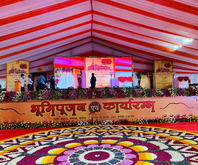 लगाई गई हैं बड़ी एलईडी स्कीन : अयोध्या में राम मंदिर भूमि पूजन निर्माण के लिए वहां मौजूद मेहमानों और सभी लोगों के लिए बड़ी एलईडी स्क्रीन लगाई गई, जिनके जरिए इस भूमि पूजन कार्यक्रम का लाइव प्रसारण लोगों ने देखा। इसी के साथ राम कोट भूमिपूजन स्थल पर बड़े पैमाने पर वेदर प्रूफ टेंट लगे हुए हैं।