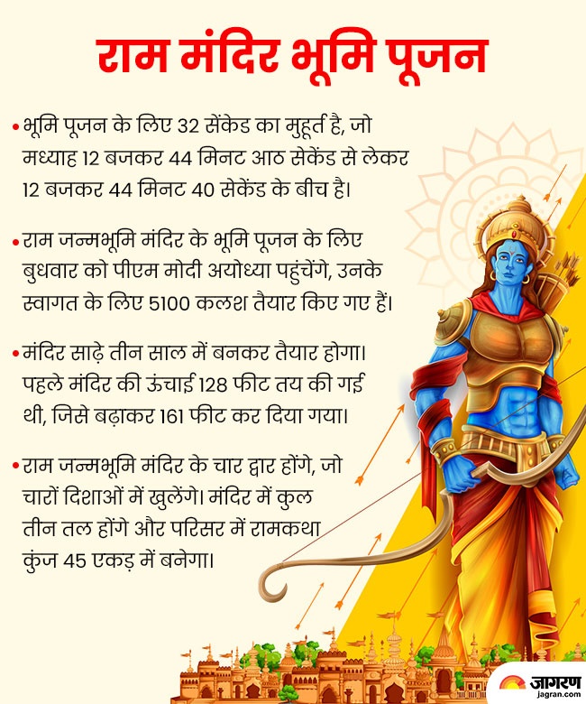 Ram Mandir Bhumi Pujan प्रधानमंत्री नरेंद्र मोदी ने बुधवार को अभिजीत मुहूर्त में श्रीराम जन्मभूमि में भव्य राम मंदिर के निर्माण के लिए भूमि पूजन करने के साथ ही आधार शिला भी रखी।