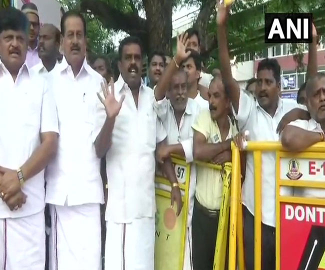 चेन्नई (एएनआइ)। तमिलनाडु के पूर्व मुख्यमंत्री और डीएमके प्रमुख एम. करुणानिधि के समर्थक अस्पताल के बाहर जुटे हैं। उनकी तबीयत बिगड़ने की खबर मिलते ही काफी संख्या में अस्पताल में बाहर उनके प्रशंसक लगातार पहुंच रहे हैं। इस बीच नेताओं का भी अस्पताल में आना-जान लगा हुआ है। उपराष्ट्रपति वेंकैया नायडू भी उनका हालचाल लेने अस्पताल पहुंचे।