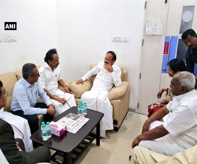 वेंकैया नायडू ने बीमार करुणानिधि का अस्पताल में लिया हालचाल