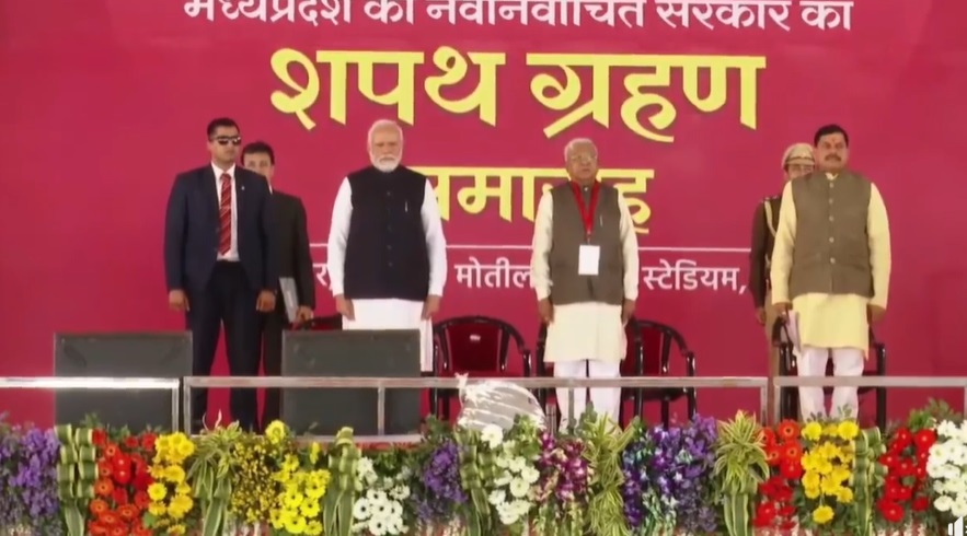 भोपाल के मोतीलाल नेहरू स्टेडियम में शपथ ग्रहण समारोह का आयोजन किया गया। प्रधानमंत्री नरेन्द्र मोदी, केंद्रीय गृहमंत्री अमित शाह सहित कई राज्यों के मुख्यमंत्री समेत दिग्गज नेता कार्यक्रम में उपस्थित हुए।