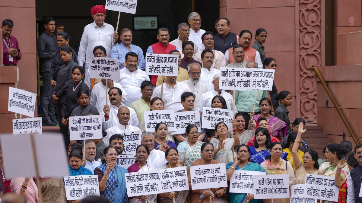 संसद परिसर में एनडीए सांसदों ने मौलाना साजिद रशीदी द्वारा डिंपल यादव पर की गई अभद्र टिप्पणी का विरोध किया। सांसदों ने अखिलेश यादव की चुप्पी पर सवाल उठाए। डिंपल यादव ने कहा कि बेहतर होता अगर वे मणिपुर की घटना पर विरोध करते। इस मामले में सपा नेता प्रवेश यादव ने मौलाना साजिद रशीदी के खिलाफ केस दर्ज कराया है।