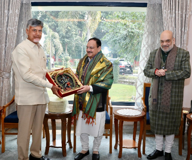 पूर्व प्रधानमंत्री अटल बिहारी वाजपेयी की जन्म शताब्दी पर बुधवार को भाजपा अध्यक्ष जेपी नड्डा के आवास पर राष्ट्रीय जनतांत्रिक गठबंधन (NDA) के नेताओं की अहम बैठक हुई। बैठक में केंद्रीय गृह मंत्री अमित शाह तेलुगु देशम पार्टी (TDP) अध्यक्ष चंद्रबाबू नायडू जेडीयू से केंद्रीय मंत्री राजीव रंजन सिंह अपना दल (एस) की अध्यक्ष अनुप्रिया पटेल और जेडीएस नेता एचडी कुमारस्वामी मौजूद रहे।