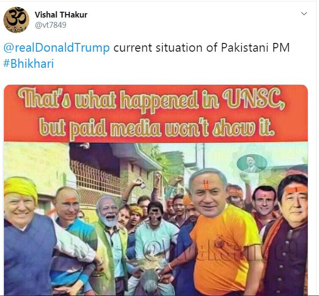 एक ट्विटर यूजर ने अमेरिकी राष्ट्रपति डोनाल्ड ट्रंप को ट्विटर पर मेंशन करते हुए लिखा कि पाकिस्तान की मौजूदा हालत कुछ इस तरह है। इसके साथ ही यूजर ने एक तस्वीर शेयर की है, जिसमें पाक पीएम इमरान खान को गधे में बैठा हुआ दिखाया गया है।