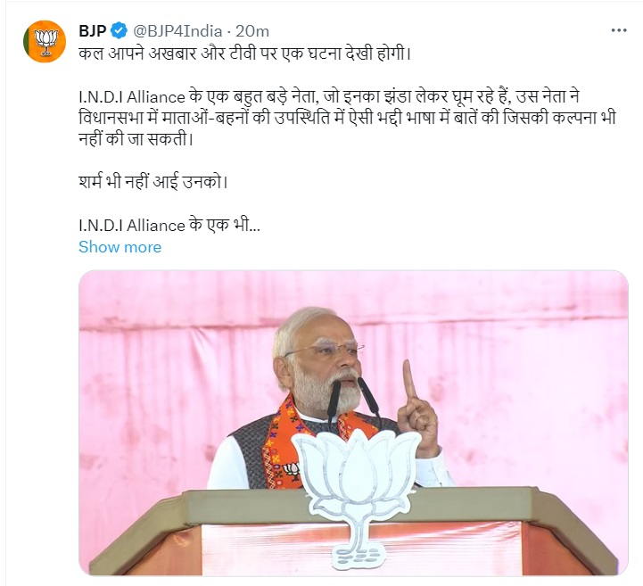 पीएम मोदी ने आगे कहा,"I.N.D.I Alliance के एक भी नेता ने माताओं-बहनों के इतने भयंकर अपमान पर एक शब्द भी नहीं बोला।"