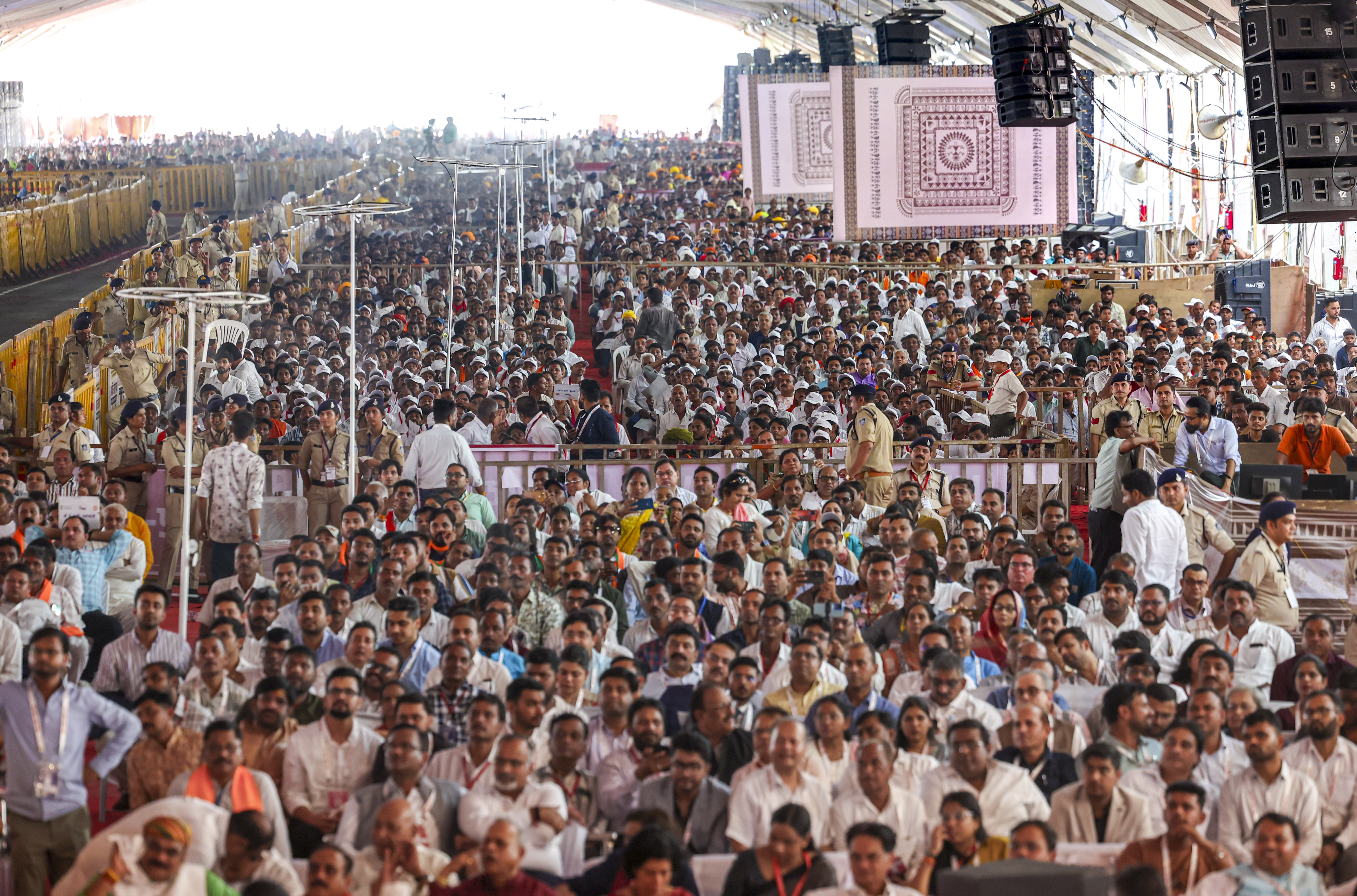 प्रधानमंत्री मोदी ने भाषण के शुरू में भारत माता के साथ नर्मदा मैया का जयकारा लगाया। साथ ही मां वाग्देवी और भगवान विश्वकर्मा को प्रणाम किया। मालवा-निमाड़ से लेकर गुजरात तक के आदिवासियों की मां नर्मदा के प्रति गहरी आस्था है। प्रधानमंत्री ने देवी अहिल्या बाई को भी याद किया। वस्तुत: देवी अहिल्या बाई और भीलों का भी भावनात्मक रिश्ता रहा है।
