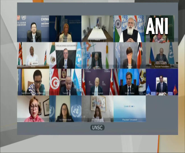 नई दिल्ली, एजेंसियां। पीएम नरेंद्र मोदी संयुक्त राष्ट्र सुरक्षा परिषद की बैठक में इतिहास रच दिया। जब पीएम मोदी वीडियो कांफ्रेंसिंग के माध्यम से संयुक्त राष्ट्र सुरक्षा परिषद (यूएनएससी) की एक उच्चस्तरीय खुली परिचर्चा की अध्यक्षता की तो वह ऐसा करने वाले भारत के पहले प्रधानमंत्री हैं। इस कार्यक्रम का संयुक्त राष्ट्र सुरक्षा परिषद की वेबसाइट पर सीधा प्रसारण हुआ। इस बैठक में संयुक्त राष्ट्र सुरक्षा परिषद के सदस्य देशों के राष्ट्राध्यक्षों, सरकार के प्रमुखों और संयुक्त राष्ट्र प्रणाली एवं प्रमुख क्षेत्रीय संगठनों के उच्च स्तरीय विशेषज्ञों के भाग लिया। इस बैठक में रूस के राष्ट्रपति व्लादिमीर पुतिन भी भाग लिया।