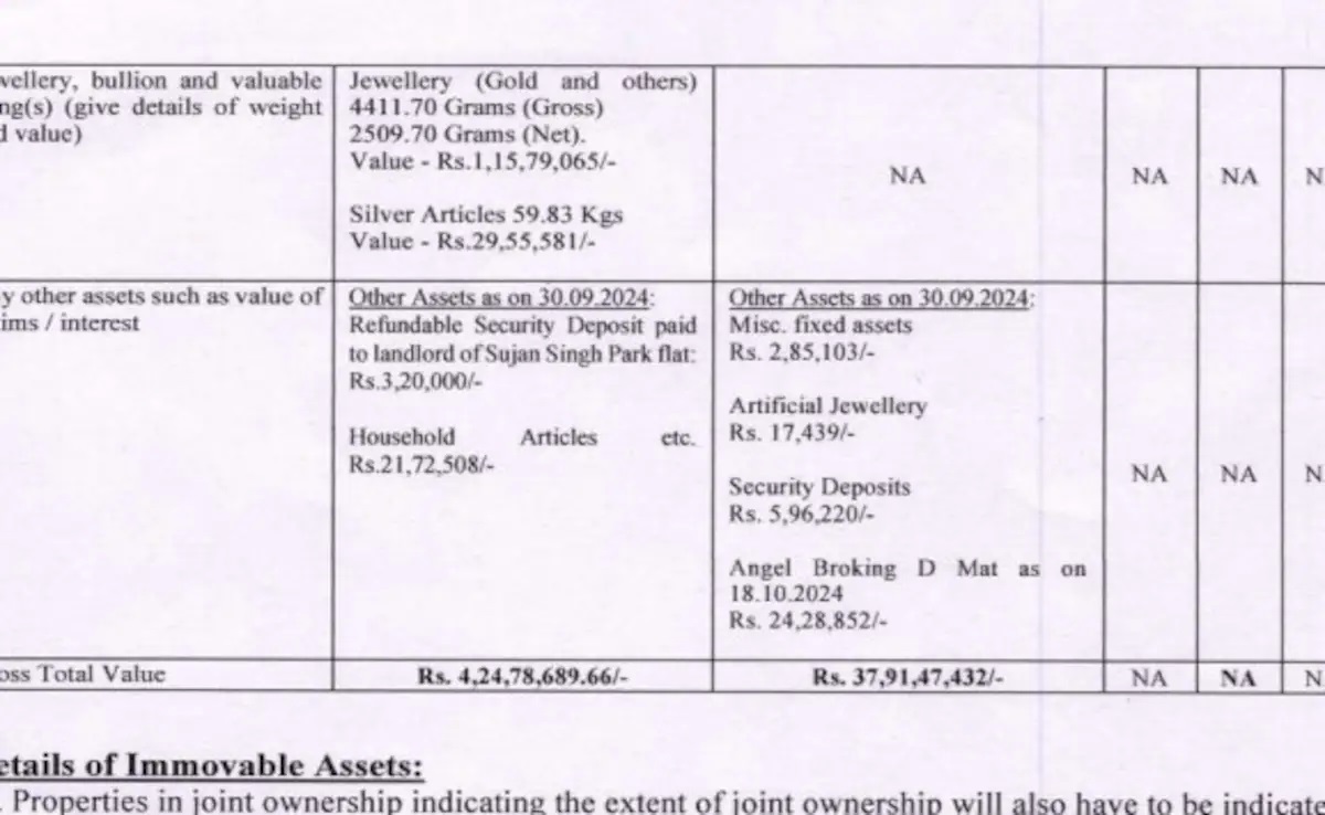 प्रियंका गांधी के पास 4.41 किलो की ज्वैलरी है। उनके पास 2.5 किलोग्राम का सोना है, जिसकी कीमत 1 करोड़ 15 लाख 79 हजार रुपये है। वहीं, वहीं उनके पास 59.83 किलोग्राम के चांदी से बनी चीजें हैं, जिसकी कीमत 29,55,581 रुपये है।