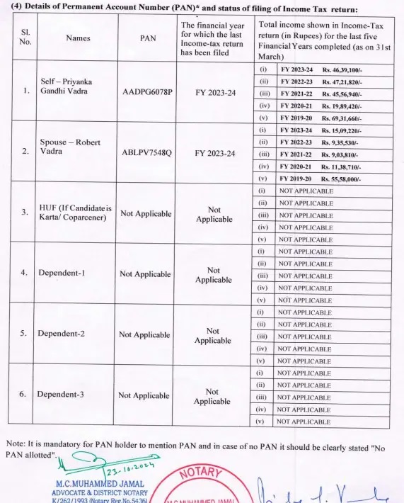 डिजिटल डेस्क, नई दिल्ली। Priyanka Gandhi Net Worth। प्रियंका गांधी ने वायनाड उपचुनाव के लिए अपना नामांकन पत्र दाखिल कर दिया है। कांग्रेस नेता ने चुनावी हलफनामे में अपने इनकम और प्रॉपर्टी का खुलासा किया है।