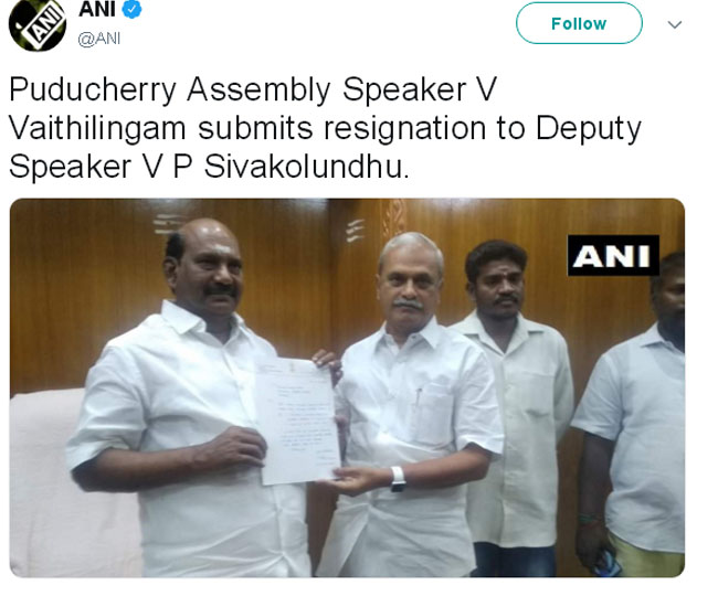पुदुचेरी। कांग्रेस के टिकट पर पुडुचेरी संसदीय क्षेत्र से लोकसभा चुनाव लड़ने के कारण दो बार के मुख्यमंत्री और वर्तमान विधानसभा अध्यक्ष वी वैथीलिंगम ने अपना इस्तीफा उप सभापति वीपी शिवकोलुंधु को सौंप दिया। वह लोकसभा चुनाव लड़ने के लिए पुडुचेरी संसदीय क्षेत्र से अपना नामांकन पत्र दाखिल करेंगे।