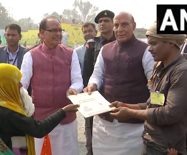 कार्यक्रम में राजनाथ सिंह और राज्य के मुख्यमंत्री शिवराज सिंह चौहान ने सिंगरौली में मुख्यमंत्री आवास भू-अधिकार योजना के तहत गरीब परिवारों को 'भूमि पट्टे' बांटे।