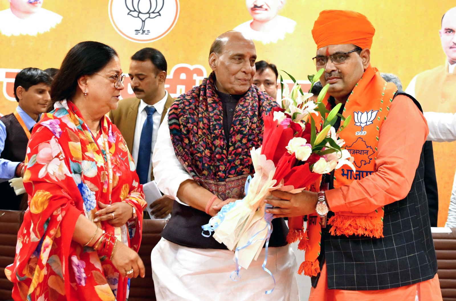 Vasundhara Raje एमपी और छत्तीसगढ़ की तरह बीजेपी ने राजस्थान में भी चौंकाते हुए फैसला लिया। बीजेपी विधायक दल की बैठक में भजन लाल शर्मा के नाम की घोषणा की गई। पार्टी नेताओं की मानें तो वसुंधरा राजे की पैरवी करने वालों से कहा गया था कि आपको ताली बजानी है। राजनाथ सिंह ने बैठक से पहले विधायकों से मुलाकात की थी।