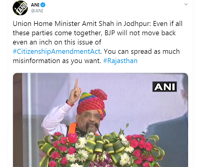 केंद्रीय गृह मंत्री एवं भाजपा राष्ट्रीय अध्यक्ष श्री @AmitShah जोधपुर, राजस्थान में नागरिकता संशोधन अधिनियम के समर्थन में विशाल जनसभा को संबोधित करते हुए। #IndiaSupportsCAA https://t.co/G5qI49Gpzg" rel="nofollow