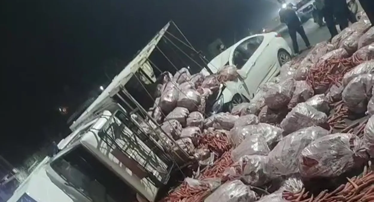 टक्कर इतनी जबरदस्त थी कि सड़क पर सब्जियां बिखर गईं और कुछ समय के लिए यातायात पूरी तरह ठप हो गया। प्रत्यक्षदर्शियों के अनुसार छोटा हाथी बहुत अधिक रफ्तार में था। चालक वाहन पर नियंत्रण नहीं रख सका और पहले सड़क पर चल रही स्विफ्ट कार को टक्कर मार दी।