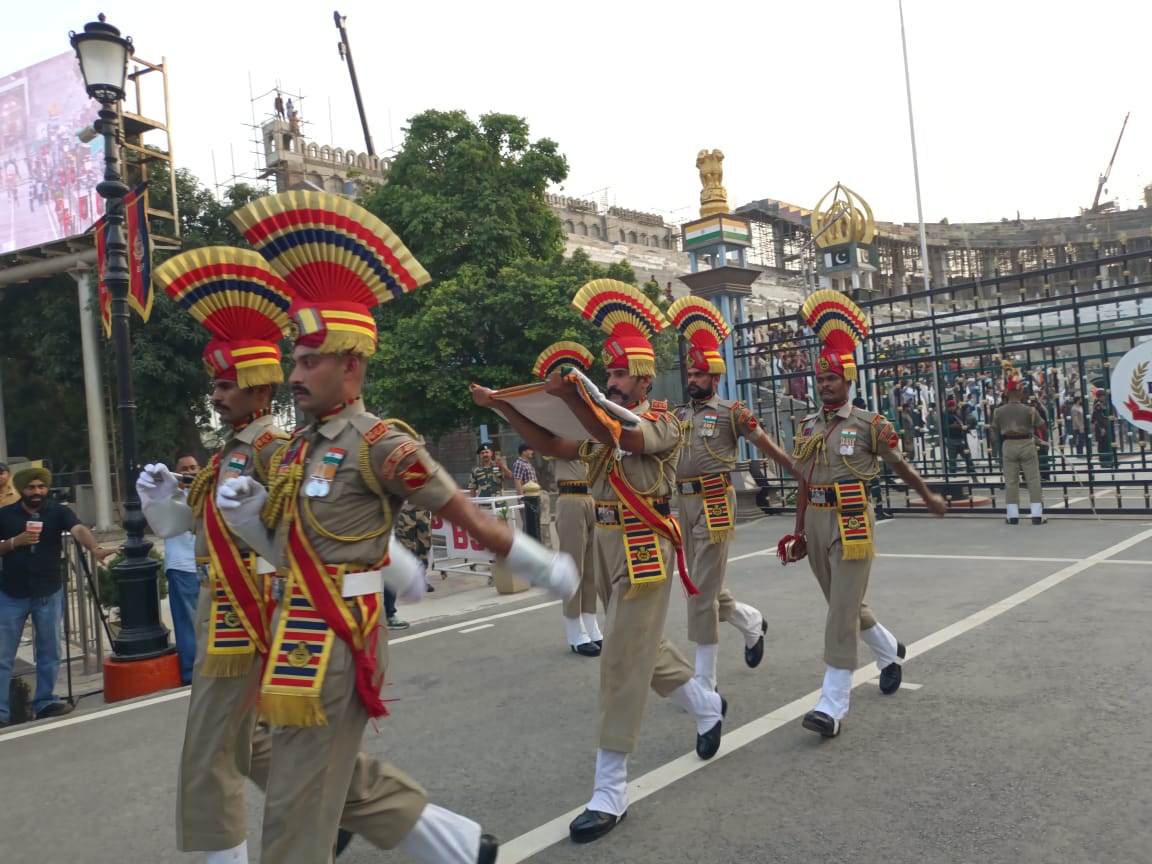 सीमा सुरक्षा बल (बीएसएफ) के जवानों ने पाकिस्तान की ओर तीखे तेवर दिखाकर परेड की। अटारी में भारतीय दर्शक दीर्घा भारत माता के जयघोष से गूंजती रही। तिरंगा शान से लहराता रहा। हालांकि मंगलवार को सीमा सुरक्षा बल ने दर्शकों के आने पर रोक लगाई थी, परंतु जो लोग अटारी सीमा तक पहुंच गए, उन्हें दर्शक दीर्घा में आने की अनुमति दे दी गई।