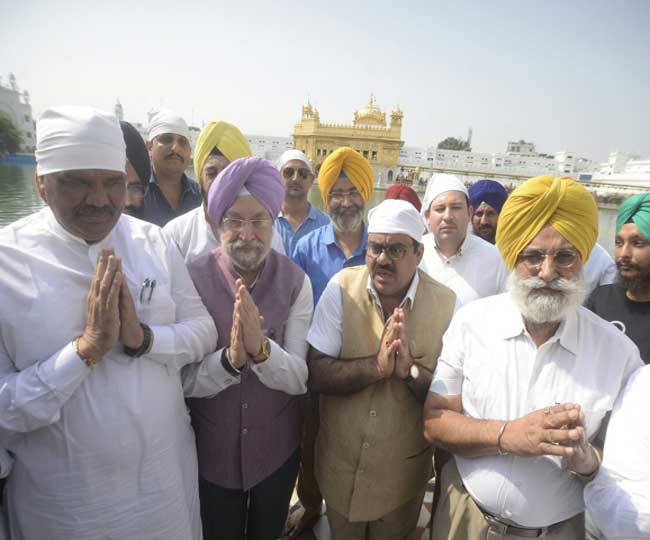 श्री हरिमंदिर साहिब में केंद्रीय मंत्री हरदीप पुरी और अन्य नेता।