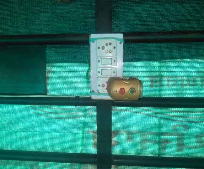 ट्रैक्टर ट्राली में लगाई गई जाली और बिजली कनेक्शन की व्यवस्था। (जागरण)