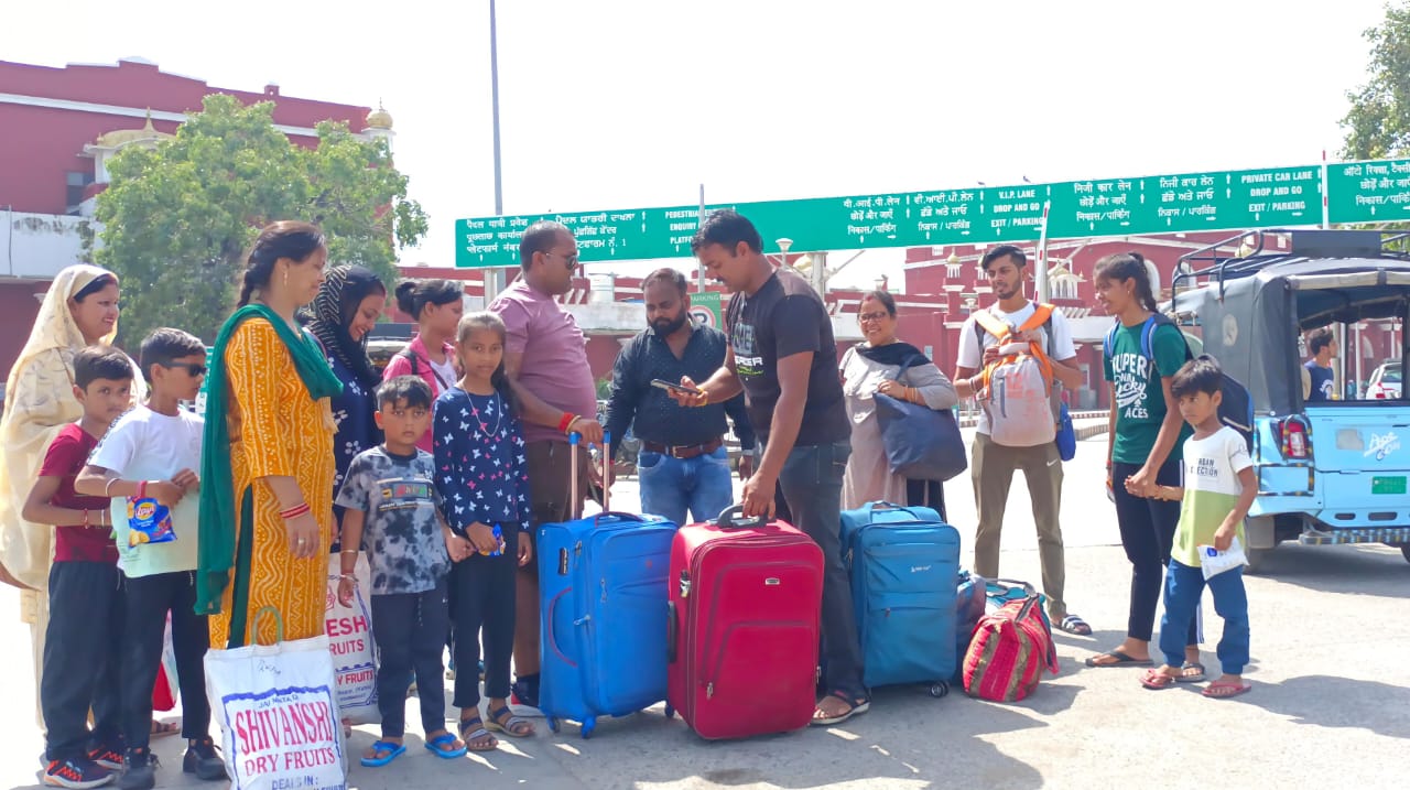 ट्रेन रद्द होने के कारण वापस लौट रहे यात्री