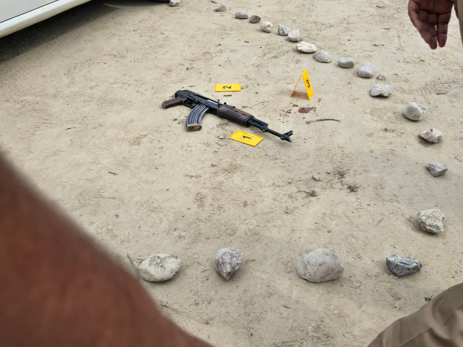 फोटो: घटनास्थल पर हथियार बरामदगी के साथ अन्य पुलिसकर्मी