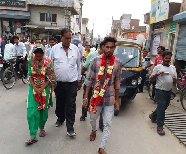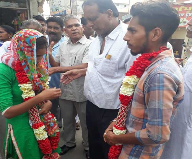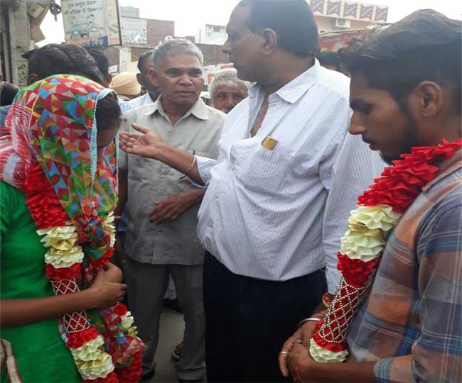 यह बात पूर्व पार्षद विजय कुमार को पता चली तो उन्हाेंने युवती के परिवार वालों से पूरे मामले की जानकारी ली और फिर शुक्रवार को युवक आैर उसके परिजनों को बुलाकर समझाया। लड़की के परिजन भी वहां मौजूद थे अौर लाेगों की मौजूदगी में पंचायत हुई। इसके बाद युवक व उसके परिजन शादी के लिए तैयार हो गए। फिर क्या था बीच चाैराहे पर ही लाेगों की मौजूदगी में उनकी शादी करा दी गई।