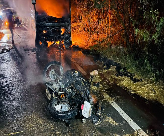 जागरण संवाददाता, बठिंडा। Punjab News: संगत मंडी के गांव गुरथड़ी व मछाणा रोड पर रविवार देर रात श्रद्धालुओं से भरी बस की सामने से आ रहे बुलेट मोटरसाइकिल से टक्कर हो गई। टक्कर इतनी जबरदस्त थी कि मोटरसाइकिल बस के अंदर जा घुसा और उसमें सवार देवर-भाभी बस के बीच फंस गए। इसी बीच बस में आग लगने पर चालक ने सवारियों को तुंरत उतार दिया और देखते ही देखते देवर-भाभी आग में जिंदा जल गए। मृतकों की पहचान नवप्रीत सिंह व रेखा निवासी गांव पथराला के रूप में हुई है। दोनों बठिंडा से अपने गांव जा रहे थे।