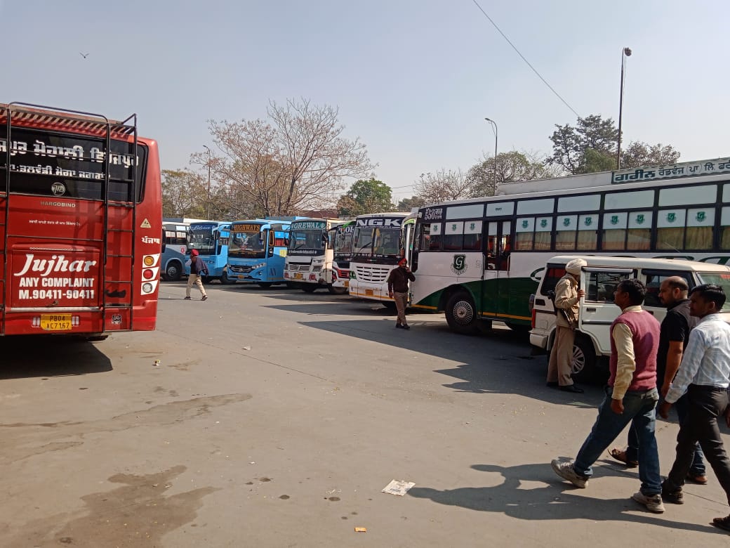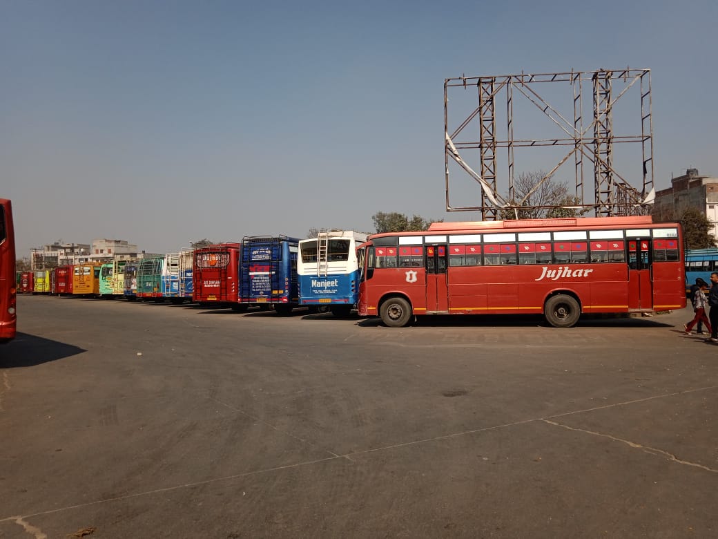 प्राइवेट और सरकारी रोडवेज बसों के पहिए जाम हैं। इससे यात्री अड्डे पर ही बैठ कर इंतजार कर रहे हैं।