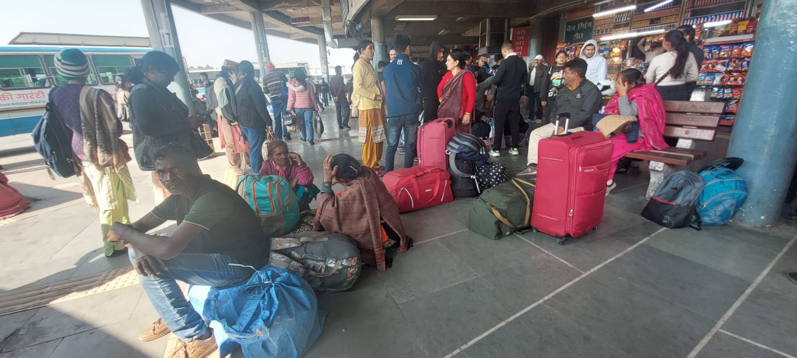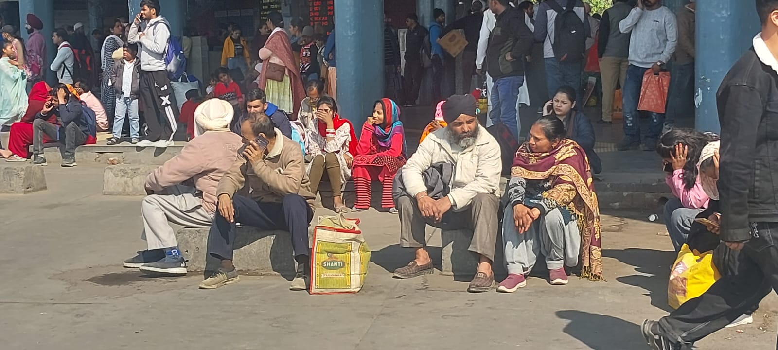 लुधियाना बस स्टैंड पर यात्री इस उम्मीद में घंटों से बैठे हैं ताकि बस चलने पर वह अपनी-अपनी मंजिलों तक पहुंच सकें।