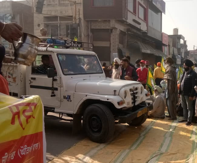 भारत बंद के दौरान नाभा के बोरा गेट पर भारतीय किसान यूनियन एकता की ओर से दिए जा रहे धरने से अस्पताल ले जाने के लिए एक मरीज के वाहन को रास्ता देते किसान यूनियन के कार्यकर्ता।