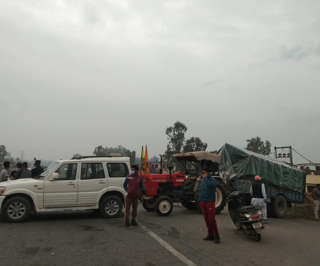 गुरदासपुर के झंडे चक्क चौक पर किसानों ने ट्रैक्टर ट्राली व कार अड़ाकर जाम लगा दिया। इससे वाहनों की आवाजाही ठप रही। लोग अपने निजी वाहनों में भी यात्रा नहीं कर पाए। बस स्टैंडों पर यात्री भटकते रहे।