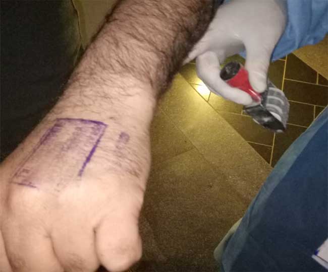 होम क्वारंटाइन वालों की कलाई पर लगाया जा रहा स्टैैंप