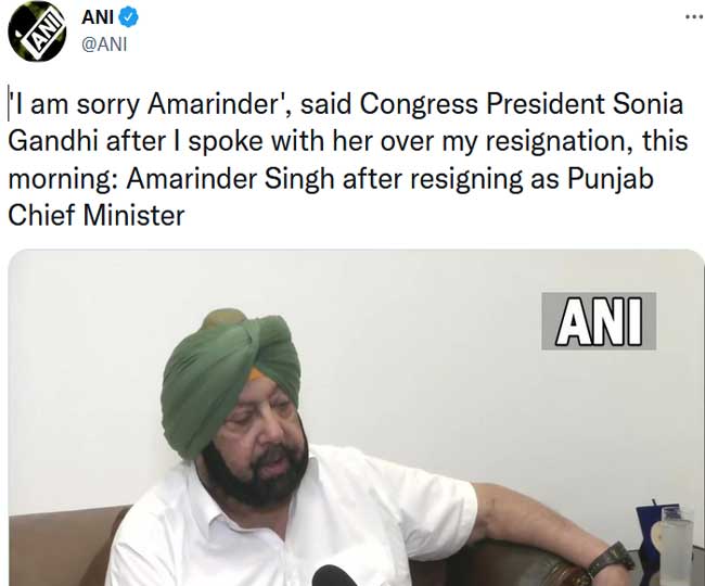 कैप्टन अमरिंदर बोले जब मैंने अपने इस्तीफे के बारे में साेनिया गांधी से फोन पर बात की जो उन्होंने कहा ' आइएम सॉरी अमरिंदर'।