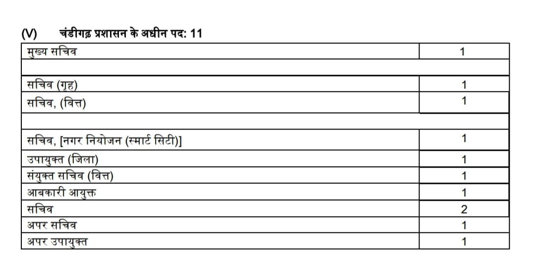 नए पदों में सेक्रेटरी अर्बन प्लानिंग एंड स्मार्ट सिटी और एक्साइज कमिश्नर के पद शामिल हैं। चंडीगढ़ में एडवाइजर की जगह चीफ सेक्रेटरी पद किए जाने को लेकर लंबे समय से मांग की जा रही थी।