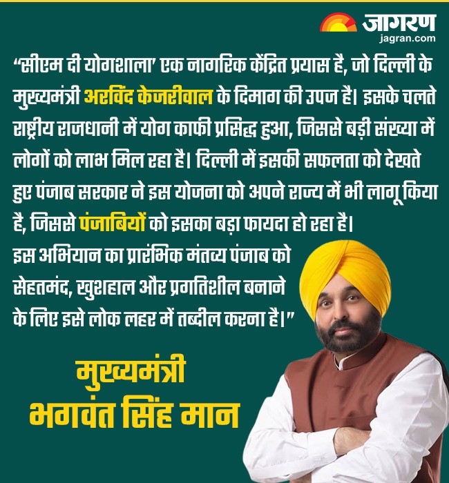 सीएम दी योगशाला’ मुहिम लोगों में योगाभ्यास के जरिए अच्छी सेहत को यकीनी बनाने के बारे में जागरूकता पैदा करने में एक अहम भूमिका निभा रही है। मुख्यमंत्री भगवंत सिंह मान का यह फैसला उनकी दूरदर्शी सोच को दिखाता है क्योंकि भागती जिंदगी के कारण पंजाब में ब्लड प्रेशर व हाइपर टेंशन के मामले पिछले कुछ सालों में तेजी से बढ़े हैं।