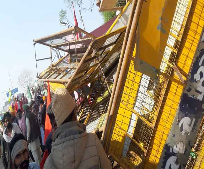 बठिंडा जिले के डूमवाली बार्डर पर किसानों ने बेरिकेट्स तोड़ डाले।