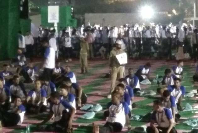 कार्यक्रम में 30 हजार लोग मौजूद हैं। लोग योग स्थल पर बनाए गए ब्लाकों में मौजूद हैं। पूरा माहौल योगमय नजर आ रहा है। प्रधानमंत्री नरेंद्र मोदी यहां 6.38 बजे यहां पहुंचे। इस मौके पर पूरे शहर में सुरक्षा के कड़े इंतजाम किया गया है। प्रधानमंत्री के संबोधन के बाद योग कार्यक्रम श्ुारू हुआ। प्रधानमंत्री का संबोधन 7.14 बजे तक चला। इसके बाद याेग का कार्यक्रम शुरू हुआ।