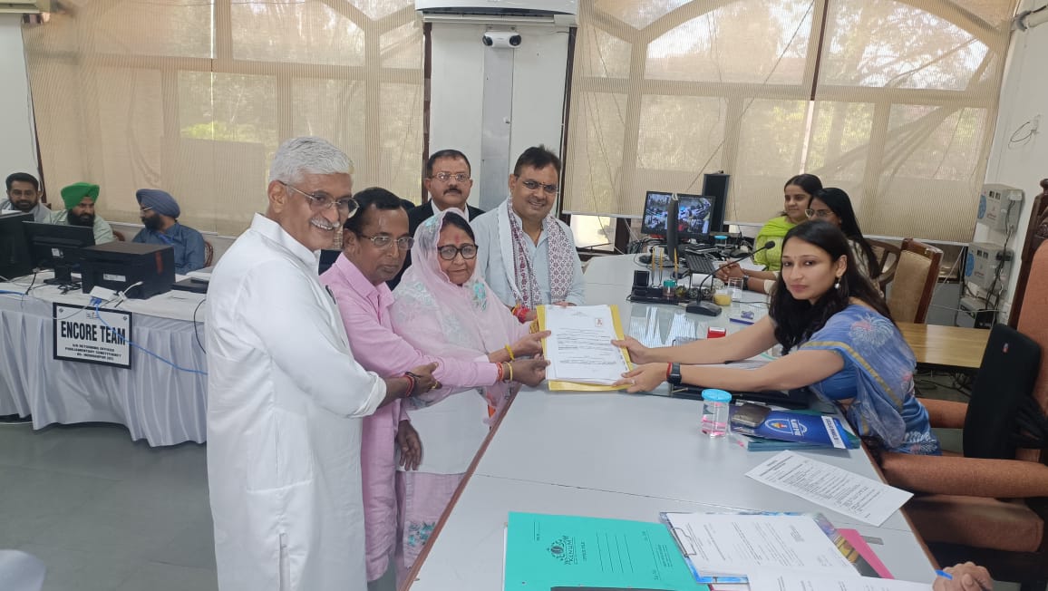 जिलाधीश कम रिटर्निंग अधिकारी घनश्याम थोरी को कांग्रेस से लोकसभा के उम्मीदवार गुरजीत सिंह औजला ने अपना नामांकन दिया। उनके साथ विधायक हरीश चौधरी, पूर्व उप मुख्यमंत्री ओम प्रकाश सोनी, डा राज कुमार वेरका, सुखबिंदर सिंह सुख सरकारिया दिखे।