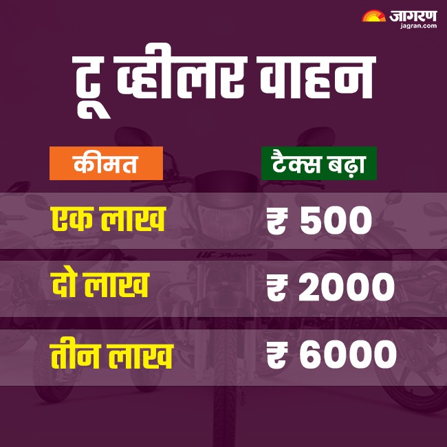 - एक लाख तक के दोपहिया वाहनों पर जहां पहले सात प्रतिशत टैक्स लगता था, उसे बढ़ाकर अब 7.5% कर दिया गया है।