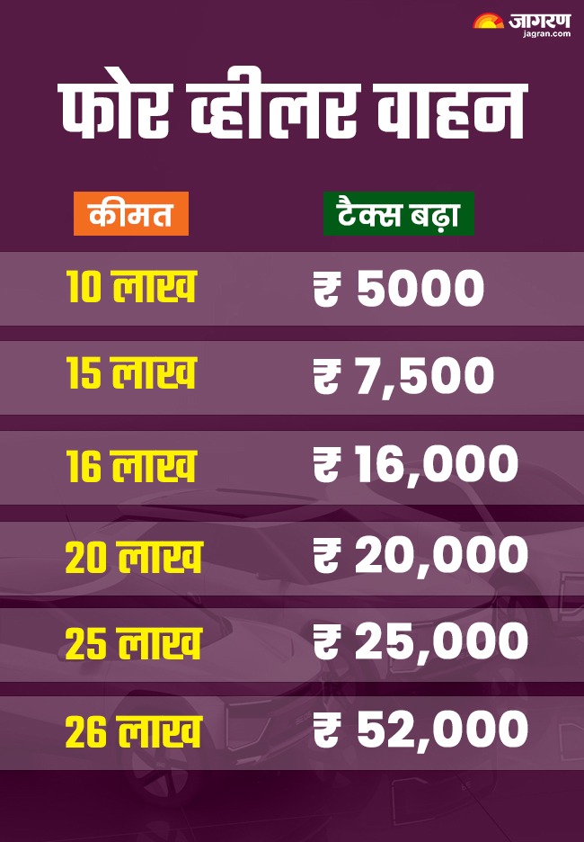 विभाग के एक वरिष्ठ अधिकारी ने बताया कि 14 अगस्त को इन सभी टैक्सों को बढ़ाने संबंधी फैसला कैबिनेट में लिया गया था।,जहां वाहनों पर थोड़ा-थोड़ा मोटर व्हीकल टैक्स बढ़ाया गया है, वहीं एसयूवी जैसे महंगे वाहनों के लिए टैक्स की एक नई श्रेणी बना दी है। इससे पहले वर्ष 2021 में मोटर व्हीकल टैक्स को संशोधित किया गया था।