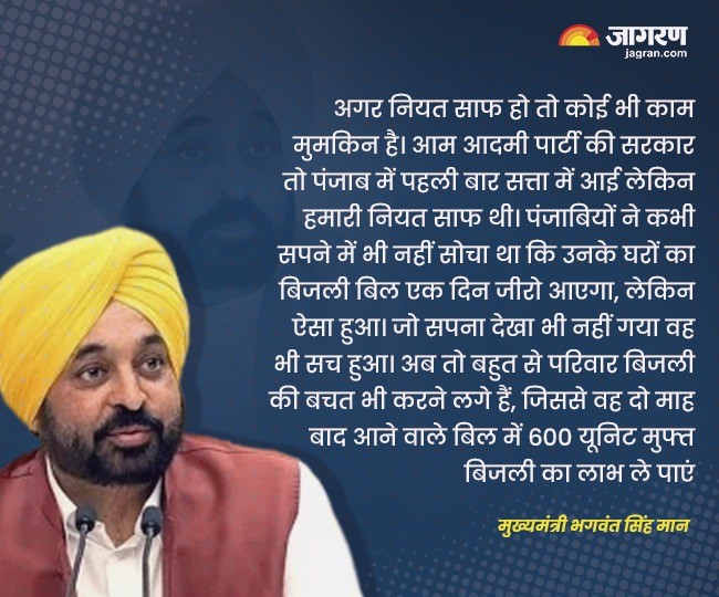 पंजाब देश का एक मात्र ऐसा राज्य है जहां करीब 90 फीसदी घरों का बिजली का बिल शून्य है। यह सब कुछ संभव हो पाया है पंजाब के मुख्यमंत्री भगवंत सिंह मान के कारण। जब मान ने पंजाबियों को यह गारंटी दी थी कि 300 यूनिट प्रति माह बिजली मुफ्त दी जाएगी तब सभी के मन में संदेह था कि यह गारंटी कहीं चुनावी जुमला न बनकर रह जाए।