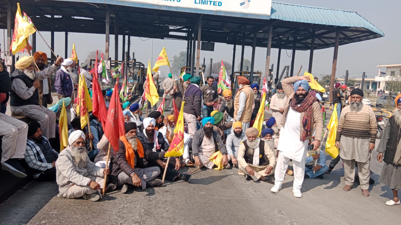 मुक्तसर-कोटकपूरा रोड पर गांव वड़िंग में बने टोल प्लाजा पर किसान धरने पर बैठ गए हैं।