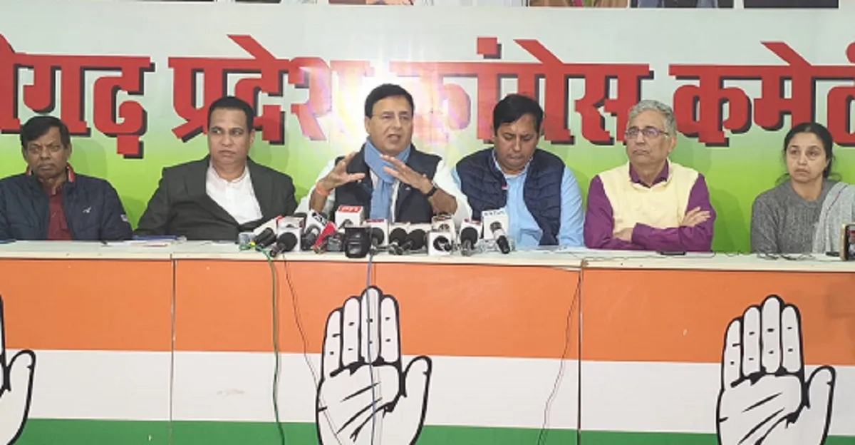 चंडीगढ़ में प्रेसवार्ता के दौरान कांग्रेस के राष्ट्रीय महासचिव रणदीप सिंह सुरजेवाला व स्थानीय नेता।