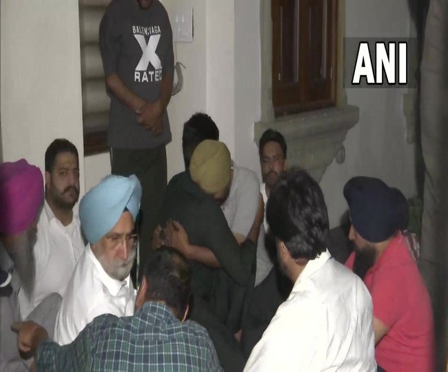 सिद्धू मूसेवाला के घर पहुंचे कांग्रेस नेता। (एएनआइ)