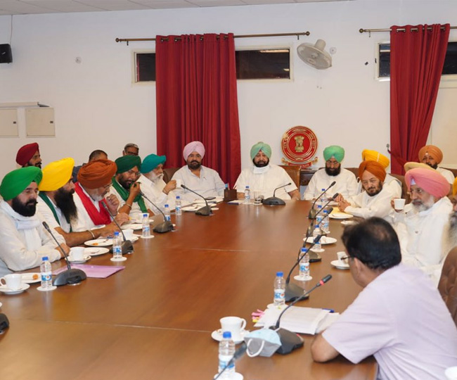 सीएम कैप्टन अमरिंदर सिंह से वार्ता करते किसान।