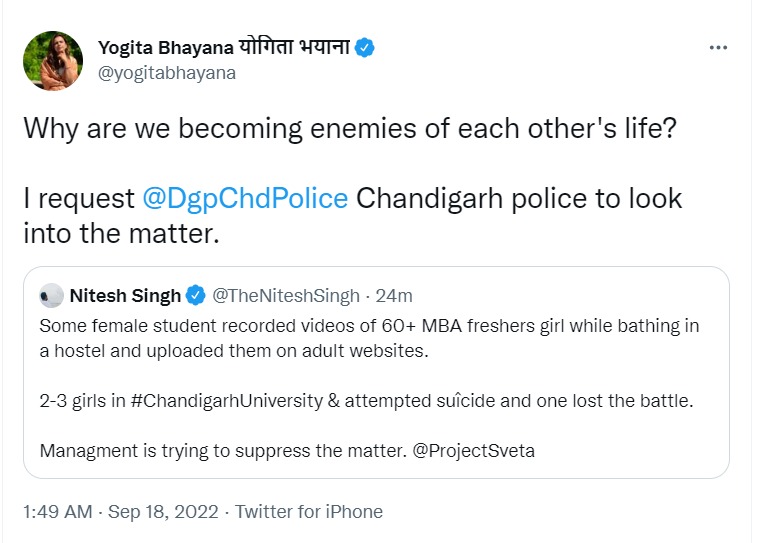 चंडीगढ़ यूनिवर्सिटी में एक लड़की ने कई छात्राओं के आपत्तिजनक वीडियो रिकॉर्ड करके Viral किए हैं। ये बेहद संगीन और शर्मनाक है। इसमें शामिल सभी दोषियों को कड़ी से कड़ी सजा मिलेगी। पीड़ित बेटियाँ हिम्मत रखें। हम सब आपके साथ हैं। सभी संयम से काम लें।
