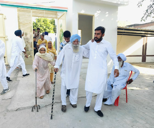 झोंक हरिहर में 82 साल के गुरदेव सिंह, 80 साल की रणजीत कौर वोट डालने जाते हुए।