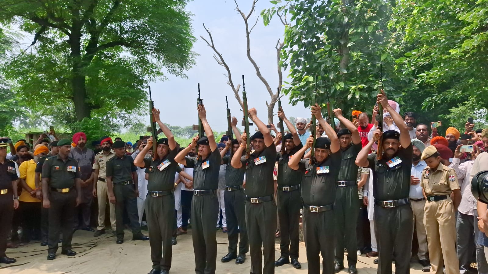 बलिदानी हरमिंदर सिंह की शवयात्रा उनके घर से दोपहर 12 बजे शुरू हुई। जो 12:15 बजे गांव के श्मशानघाट पहुंची। जहां सेना की 19वीं आम्र्ड फोर्स के जवानों ने अपने बलिदानी साथी को अंतिम सलामी दी। इसके बाद पिता जसवंत सिंह ने बलिदानी की पार्थिव देह को मुखाग्नि दी।